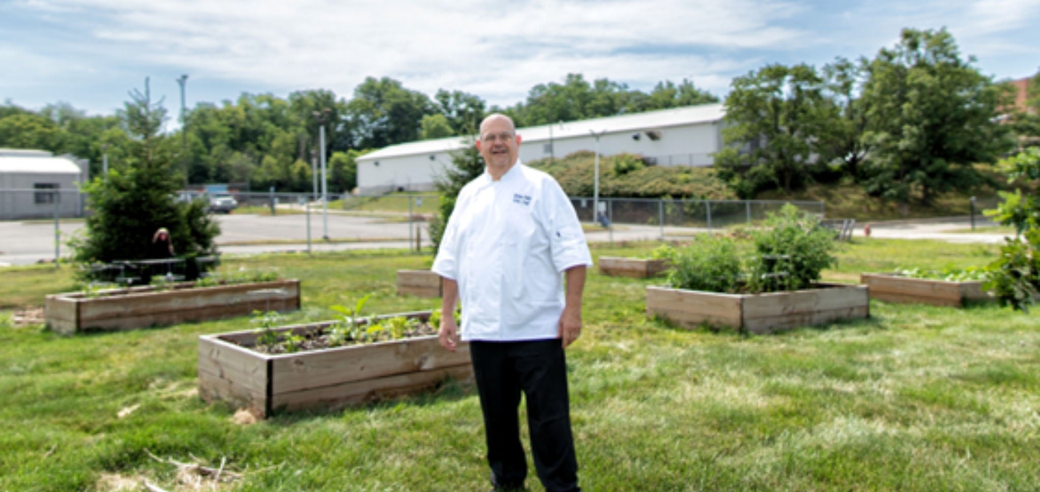 Millikin Dining works to collect organic materials—including food waste and compostable service items such as napkins and wooden stir sticks—to be composted into useable, nutrient-rich soil amendments including feeding our own Millikin Dining Garden.